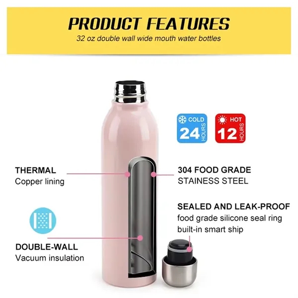 Description:This bottle is crafted with double walls, the bottle out there with inside and outside stainless steel. Beverage will be kept hot and cold for up to 12 hours! The double-wall feature prevents condensation and burns, retaining the temperature of your beverage. Produced from 304 superior stainless steel. Your daily water intake will be pure as stainless steel does not retain flavors from previous content.This drinking bottle is absolutely and totally leakproof and shatterproof. Safe in knapsacks, beach bags, in the hands of children, and your desk at the office. Perfect for the water you need at the gym, work, school, or around the house.The bottle has a slender, elegant appearance. Designed with delicate, muted hues and sophisticated patterns, it will enhance your office or kitchen and brig