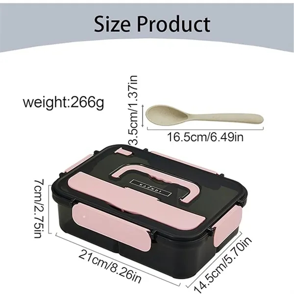 Description:This versatile lunch box features a convenient cutlery slot for a spoon and fork, making it easy to enjoy meals anywhere. With secure buckles on all four sides, it remains stable and safe during transport. It includes four compartments, allowing you to pack a variety of foods like fruits, vegetables, and snacks, promoting balanced nutrition. Made from odorless, food-grade PP material, this lunch box is microwaveable and perfect for outdoor adventures. Additionally, the cover doubles as a mobile phone holder for watching shows while you eat. Its reusable design ensures consistent nutrition and flavor, making it an ideal choice for anyone on the go.