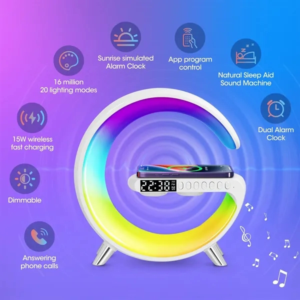 Description:Experience the perfect blend of functionality and style with this multifunctional smart alarm clock. Crafted from durable ABS material, it measures 8.86 x 3.23 x 9.06 inches, making it an ideal addition to any bedside table or office desk. This all-in-one device features an alarm clock, wireless phone charging, and a Bluetooth speaker, packaged in a sleek and modern design. The vibrant LED lights enhance your space with customizable colors, creating a soothing ambiance. Perfect for corporate gifts, home decor, or tech enthusiasts, this smart alarm clock combines convenience and contemporary design seamlessly.