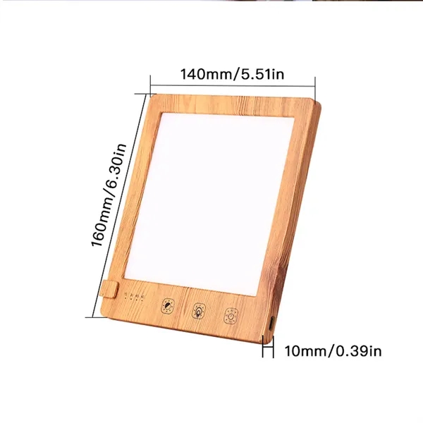 Description:Portable Full Spectrum Light Therapy Lamp With Timer. This light therapy lamp replicates sunlight with full spectrum light, providing brightness levels from 200 to 10,000 Lux in warm yellow, warm white, and white colors. With six adjustable brightness levels and a Stepless Dimming feature, you can customize the light intensity from 5% to 100% for your comfort, depending on distance, environment, and light sensitivity. The lamp’s sunset mode gradually dims over 20 minutes, simulating a sunset, and has an intelligent timer to end your session automatically. Its memory function recalls your last settings for quick use. The portable, ultra-thin design and special hanging hole make it easy to carry and mount.