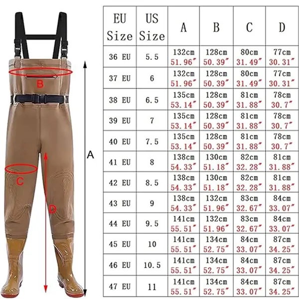 Description:Our PVC Waterproof Waders are designed for fishing enthusiasts, crafted from durable PVC material to ensure long-lasting waterproof performance. These lightweight and breathable boots offer ultimate comfort with strategic ventilation, keeping your feet dry during extended fishing trips. Featuring adjustable shoulder straps, they provide a customizable fit for every individual, ensuring security and comfort while you focus on fishing. The wading hip boots are engineered with glued, double-stitched, and taped seams for maximum durability, while the heat-welded boot attachment guarantees reliable protection. Versatile in design, these boots are perfect for various outdoor activities, including hiking, hunting, gardening, and more.