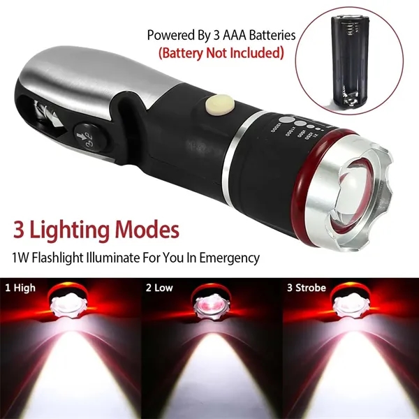 Description:Be prepared for emergencies on the road with this multi-functional escape tool. The hammer with a safety cap and hidden cutter helps you break free in case of an accident, while the bright LED lights (work light, flashlight, and SOS red warning) provide illumination for repairs or signaling for help. Powered by 3 AAA batteries, this compact tool fits easily in your glove compartment, purse, or pocket, making it a perfect gift for any driver.