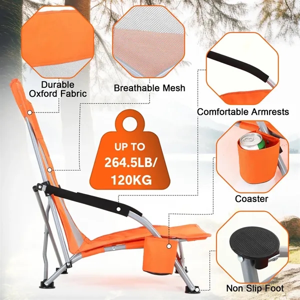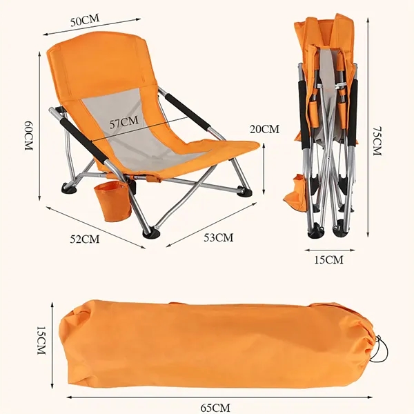Description:Nice low beach chair is made with a breathable and cooling mesh fabric that allows air to flow while you sit. There are arm cushions on the metal arms so you can rest your arms comfortably. Also included is an easy to reach cup holder to hold your drinks or personal items. Take this chair with you anywhere: beach, park, camping, hiking, etc.Our chair is made with a heavy duty steel and industrial grade Oxford 1000D polyester mesh. It is sturdy and durable. The lightweight frame and the included carrying case allows you to transport the chair easily. The folding size is only 21 * 20 * 23 (L*W*H), so you can store it easily.The chair’s heavy duty frame allows it to sustain weight up to 300 . or 136 kgs.