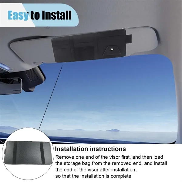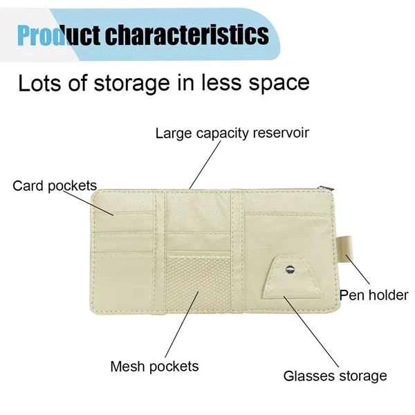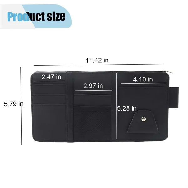 Description:PU Leather Multi Function Car Visor Organizer High Quality. Crafted from high-quality PU leather, this car visor organizer is the epitome of sturdiness and odorless convenience, ensuring a clutter-free driving environment. It’s designed to hold an array of items such as change, pens, sunglasses, lipstick, headphones, notes, mobile phones, driver’s licenses, charger cables, and CDs, keeping your essentials organized and readily accessible. With multiple pockets for added space, it features a zippered large compartment, a mesh pocket, five card holder pockets, a glasses holder, and a pen holder, maximizing storage efficiency. Installation is a breeze with its elastic band design, taking no more than 20 seconds to secure onto your car visor without hindering your view.