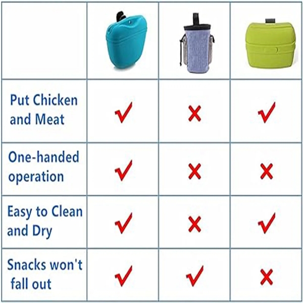 Description:This portable pet treat pouch is perfect for daily walks and dog agility training, accommodating dry, wet, or frozen treats. Designed with a convenient buckle closure, it opens and closes easily with one hand, preventing treats from falling out. The upgraded belt clip securely attaches to your waist or bag, keeping your hands free during training or walks. Made from high-quality, soft silicone, the pouch is durable, easy to clean, and compact for convenient storage and transport. One small pouch can hold a variety of items, making it an essential tool for dog trainers and owners.