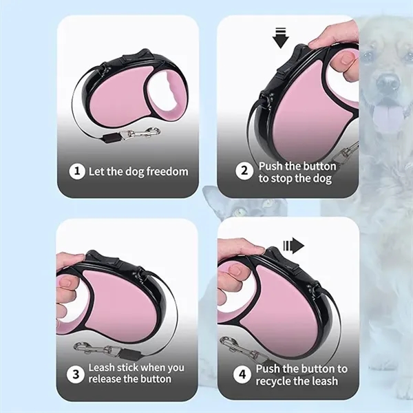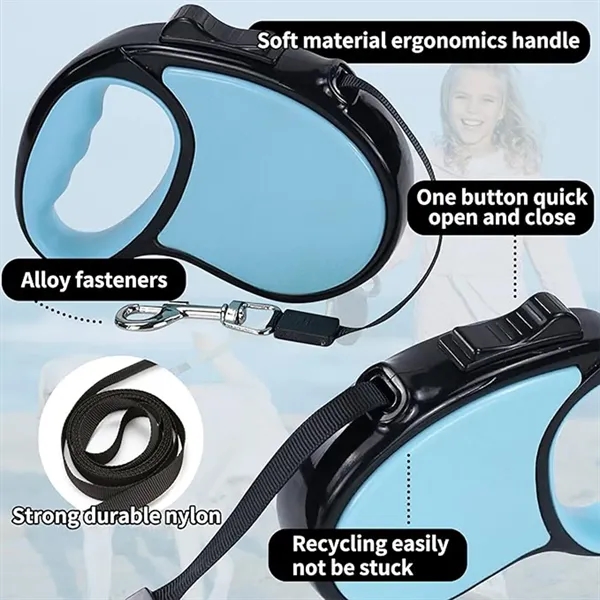 Description:This 360 degree tangle-free retractable dog leash extends up to 10 feet, allowing your dog to roam freely while preventing twists during walks. The single lock/release button enables quick retraction and extension for easy control. Made from durable nylon, the ribbon-style leash ensures your dog’s safety and provides plenty of room to explore. The one-button quick lock, pause, and unlock feature is easy to operate with your thumb, while the comfortable, anti-slip TPE handle offers a secure grip for a pleasant walking experience without hand strain.
