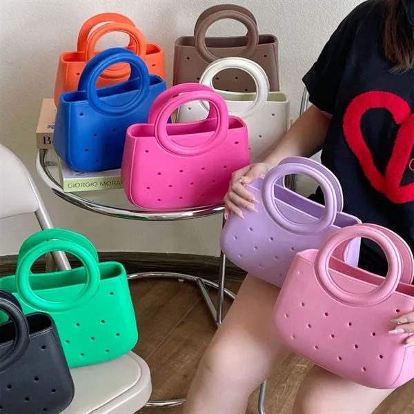 Description:Washable Beach Waterproof Travel Tote Bag . Our durable and waterproof beach bag, made from high-quality rubber, is built to endure sandy shores and wet conditions, keeping your belongings dry and clean during beach adventures. With spacious dimensions of 5.91×14.96×12.6 inches, it offers ample room for towels, sunscreen, snacks, and toys, making it perfect for a fun day by the sea. Whether you’re lounging by the water or exploring coastal trails, this versatile bag is ideal for all outdoor activities. Its stylish, functional design makes it a thoughtful gift for beach lovers. Crafted from premium rubber, it’s both long-lasting and eco-friendly, supporting sustainable practices.