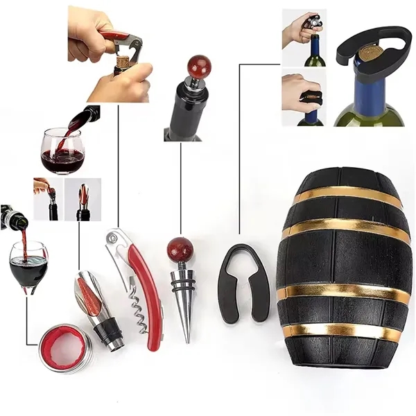Description:Wine bottle opener is constructed from dense, heavy-duty zinc alloy and stainless steel, making it unbreakable, rustproof, and visually appealing,Strong. This Wine Opener Set will impress even the most high-brow wine enthusiasts and connoisseurs. Simply remove the foil with Wine foil cutter and manual wine bottle opener removes cork in seconds with simple motions.Place the drip ring on your wine bottle neck which prevents drips and stains on your table or counter ,and then using wine pourer enriches your wine. Wine pump-stopper can keep your wine fresh! Great wine opener kit. The screwpull wine opener has durable soft grip handles and unique chrome plated finish.This wine set is applied to all corks typles both natural & synthetic corks ,any size bottle of wine or champagne.