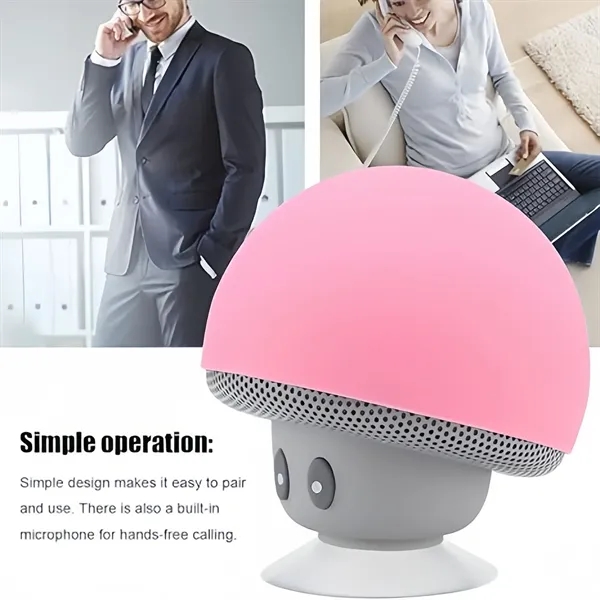 Description:Pocket-sized and lightweight, this speaker goes anywhere you do – clip it on your backpack or toss it in your bag for music on the move! Don’t underestimate this little powerhouse! It delivers rich, clear audio that fills any room, defying its compact size.The innovative suction cup sticks to walls, windows, or even your bathroom tiles, making it ideal for shower tunes, poolside relaxation, or hands-free cooking entertainment.Built-in phone stand lets you prop up your phone while you jam or unwind, keeping your hands free.Packed with long-lasting battery life (3 hours playtime, 12 hours standby), this speaker keeps the music going strong, wherever you roam.The cute and charming mushroom design adds a touch of whimsy to your space and makes a delightful gift for any occasion.