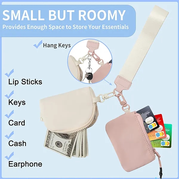 Description:The dual pouch wristlet is made of lightweight and durable nylon fabric. It is waterproof and easy to clean, helping to protect the things you put in your bag from getting wet. Also equipped with a skin-friendly nylon wrist strap, making it more convenient for your daily use.The wristlet wallet for women comes with a durable metal zipper buckle. The zipper can work smoothly, It is perfect for putting small daily necessities. And you also can rest assured to hang other things on the wrist strap button.The dimensions of the bag are 4.5 IN * 3 IN for the square shape and 4 IN *3 IN for the semicircular shape. And the two pouch has hook&loop design(Removable). You can choose which bag to carry at will to meet your daily needs.Not only a coin purse, they can also easily hold credit cards.