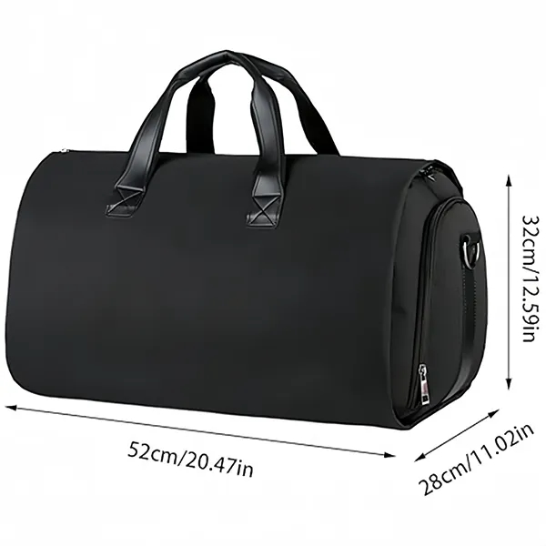 Description:Pack for any adventure with this versatile duffel bag! Transitioning seamlessly from a wrinkle-free suit carrier to a spacious duffel, this 21.6 x 11 x 11.8 item is your all-in-one travel companion. Crafted from durable, wear-resistant Oxford cloth, this product features a dedicated shoe compartment, external passport pocket, shoulder strap, and a detachable key ring for ultimate organization. Also, this duffel is reinforced with top-grade metal fittings. Perfect for business trips, weekend getaways, or hitting the gym, this bag is built to last.