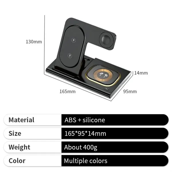 Description:Fast Foldable Desktop Station Wireless Charger. The Fast Foldable Desktop Station Wireless Charger is a sleek and portable charging solution that combines convenience and versatility. Designed to support fast charging for all Qi-enabled devices, this foldable wireless charger station offers a clutter-free charging experience. Its adjustable foldable design allows for easy storage, making it perfect for home, office, or travel use. Featuring a high-efficiency charging coil, it ensures a stable and safe charging process, protecting devices from overheating or overcharging. The charger also supports vertical or horizontal positioning, allowing you to watch videos or take calls hands-free while charging.