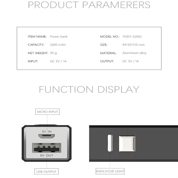 Description:Power Bank Usb Cable Quick Charge Mini 2600 Mah Power Banks. Introducing our Mini 2600mAh Power Bank, the ultimate portable charging solution for your on-the-go lifestyle! Compact and lightweight, this sleek power bank fits effortlessly into your pocket or bag, ensuring you stay powered up wherever you are. Equipped with Quick Charge technology, it delivers rapid charging for your devices, reducing downtime and keeping you connected. The included USB cable makes charging a breeze, allowing you to power up your smartphone, tablet, or other USB-enabled devices in no time. Whether you’re traveling, at work, or just out and about, this mini power bank is a must-have accessory. Its stylish design and reliable performance make it perfect for anyone who values convenience and efficiency.