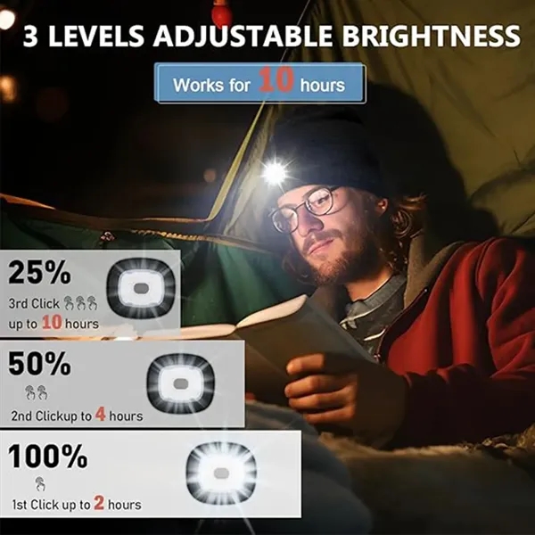 Description:This LED beanie offers both warmth and illumination, combining a cozy winter hat with a hands-free LED flashlight. Ideal for outdoor activities like hunting, camping, running, and walking the dog, it provides 120 Lumens of light with a range of up to 30 feet. The built-in, rechargeable LED light offers three brightness settings and can be charged via USB, eliminating the need for battery replacements. Perfect for activities like jogging, hiking, auto repair, or night work, this versatile beanie fits all sizes and makes a great gift for both men and women. With 4 hours of continuous use or up to 8 hours on intermittent settings, it’s a must-have for night time outdoor adventures.
