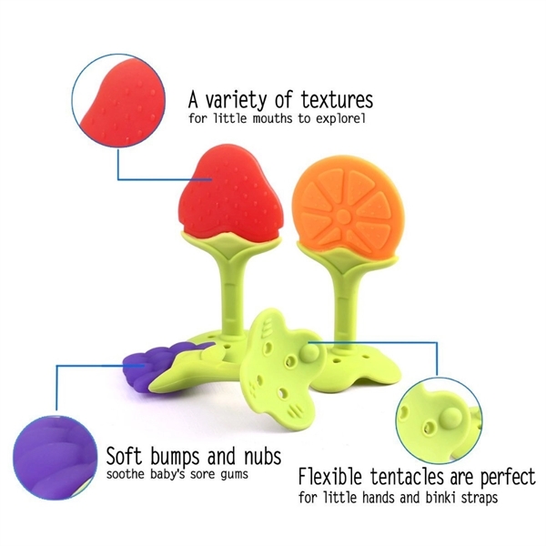 Description:Baby’s Safety is Our Top Priority – This baby teething toy is made of food-grade silicone. We are committed to focusing on the HEALTHY development and HAPPINESS of your baby. Pain & Gum Soreness Relief – Our infant teething keys are designed to soothe, massage, and reduce fussiness & discomfort. It’s going to relieve your child’s teething pains. Different shapes of products have different textures. The pliable beads and bumps design will help them relieve teething discomfort. Fit For Your Baby’s Hand – The baby texture toys’ size perfectly shaped for little hands, babies can easily grab onto the stem. Exercise baby’s fingers flexibility, more easy to hold the teether toy. Multifunction Silicone Baby Teethers – You can teach your baby these fruits while they enjoy looking at the fruit teet
