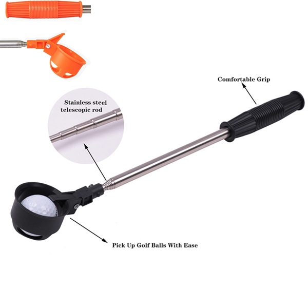 Description:The telescopic stick is component of stainless steel, won’t get rust even though immersing in the water. Telescopic design, can get back your ball wherever it is easily!Lightweight but Strong Enough: It weights only 7 Oz, won’t feel any pain when keep using it. Stainless shaft give a strong feel as well as metallic looking that matches your irons.Automatic Locking Scoop Cup Design: The automatic locking device on the scoop prevents the golf ball from being dropped When Retrieving.Grab sturdy: Our golf ball pick up grabber can grab the ball on the ground sturdy, no need to bend over to retrieve the ball any longer.Lightweight but durable: Won’t feel any heavy weight when apply with this little stuff, it is strong and durable enough though one thousand times of use!