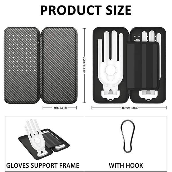 Description:This golf glove storage box set is a close companion for golf enthusiasts! The storage box uses a stylish carbon fiber texture, which is durable and full of texture. The zipper design is easy to open and close. The internal space is reasonable. The net pocket on the left can store small accessories such as ball markers and tacks. The white golf gloves placed on the right have a vent design to keep your hands dry and comfortable.Whether you are going out to play or storing it daily, it can provide good protection for your gloves to prevent the gloves from being deformed by pressure. At the same time, it makes your golf equipment storage more neat and convenient to carry, showing professionalism and quality, helping you to give full play to your skills on the golf course!