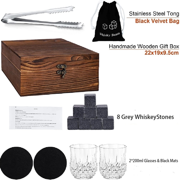 Description:Great and high cost perfermance. This beautifully gift-boxed set with everything a whiskey lover could ask for. Includes 2 glasses and 8 granite chilling rocks. The velvet bag will protect chilling rocks for a long time. Tongs and 2 table coasters perfectly complement this gorgeous bourbon gift set.Cool whiskey glass gift boxed set will be premium gift for whiskey drinker.whiskey set for scotch bourbon drinker. Perfect for birthday, anniversary, retirement, wedding, father’s day, labor day, christmas, thanksgiving day, new year, veterans day, valentine’s day.