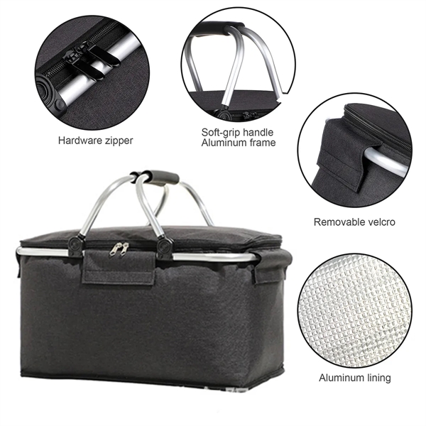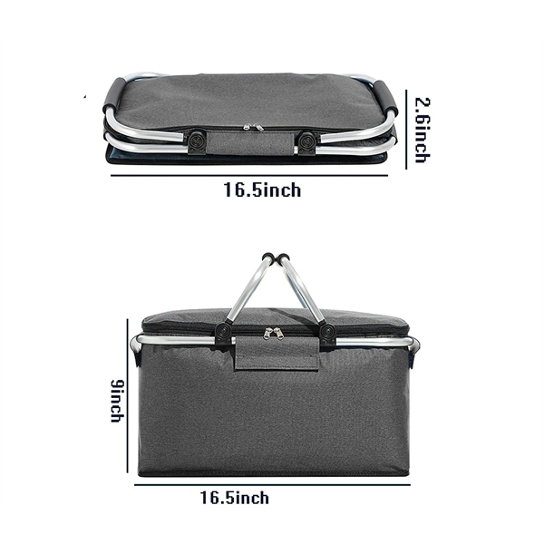 Description:Take your picnics to the next level with this insulated picnic basket! Measuring 16.5 x 7.9 x 9, this item is made of high-quality tear and water-resistant Oxford fabric and is a lot more durable than other options. While lightweight, this product includes an aluminum frame, an interior foil lining for insulation, a top lid, a zipper closure, two carry handles, and a handy foldable design. Don’t miss your chance to order this popular promotional product for your next tradeshow giveaway!