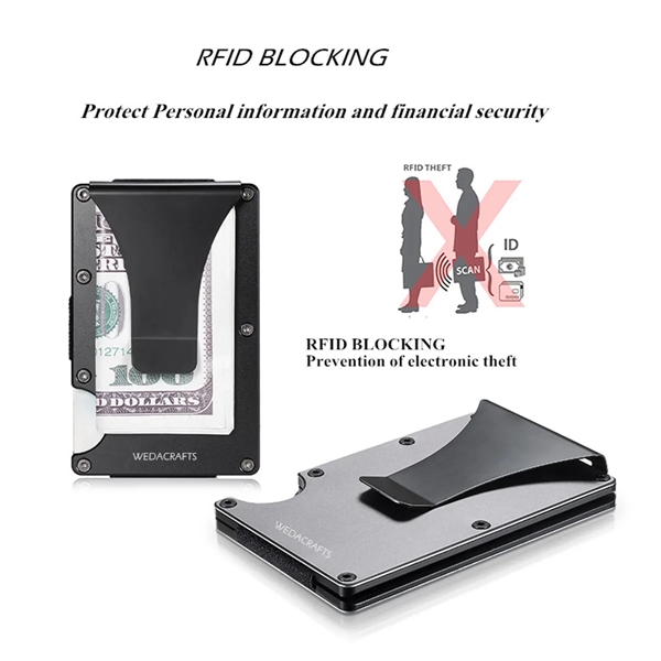 Description:With a push of your finger, you will have easy access to every card within our wallet. Hold anywhere from 1-12 cards at any time. Breathe easy because your cards will be shielded by the body of this wallet protecting them from even the most powerful RFID Chip Readers. The money clip allows you to secure several bills to the outside of your wallet in a traditional money clip form. The proprietary metal clip is designed for enhanced security and reliability. Given its sleek design & quality aluminum construction, this RFID blocking metal wallet is a popular wallet for both women & men. They make great gift ideas for the minimalists in your life!
