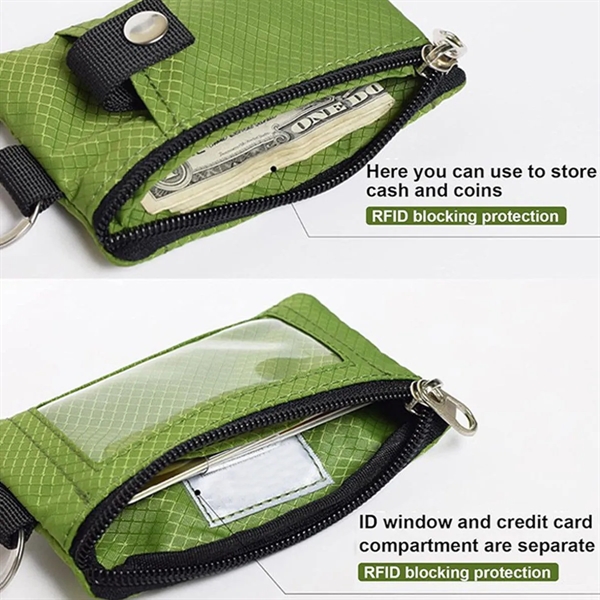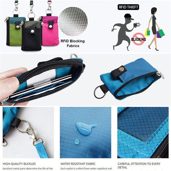 Description:Zip ID Case Wallet measures: 4.75 W x 3.12 H (or 120mm x 78mm) with key ring. The lanyard is 18.25 high, perfect for when you only need to carry a few cards,coins and several bills. Your anti-RFID travel wallet is made of the latest RFID blocking materials, perfectly protect your money and personal information from theft. Dual zippered compartments,a cards slot big enough for 8 credit cards and an ID slot with window- It’s easy to organize all your necessities with two zippered compartments that keep cards, cash and more safe and secure. Each wallet is crafted from water-repellent and heavy-duty rip-stop nylon. Thanks to the high-quality fabric, the wallet is lightweight and durable. Currently in stock for the main picture of a few colors, other color blocking styles can be customized,