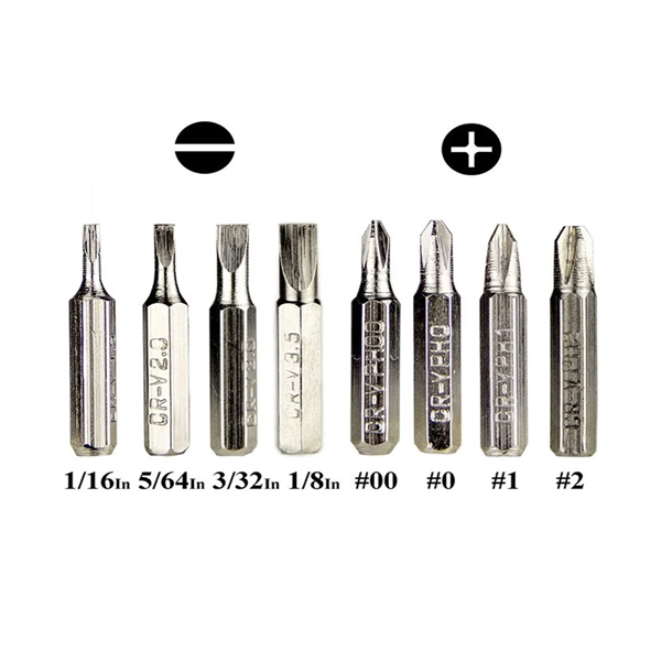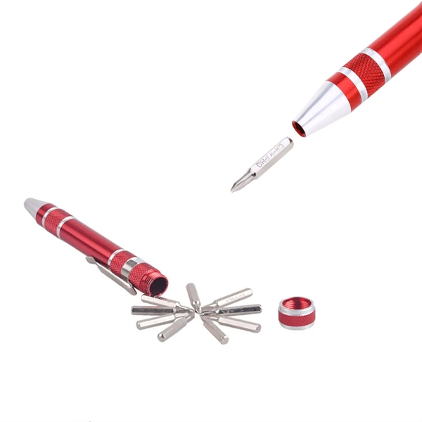 Description:The pocket screwdriver is designed in the shape of a pen, there are 8 different screwdriver heads inside the pen. The lightweight and compact design makes the mini screwdriver convenient and easy to be carried. This hardware tool is great for homeowners and DIYers to quickly do jobs such as electronic assemblies and repairs, home improvement projects and so on. It is sturdy and durable, so you can use it at home, office or on the road. You can add it to your hand tools, home improvement supplies or office gadgets for assembly or repair when in need. It is very easy to change the screwdriver bits, just unscrew the top cover of the pen directly to take out the screwdriver bits that need using, and then put it into the tip of bit holder.