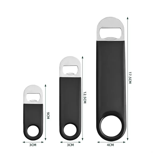 Description:Easily Open Bottle Caps Like a Pro! Premium Heavy Duty Stainless Steel! Vinyl Rubber coated for Extra Grip and Sealed for Protection. Designed By Bartenders! Made for the Professional.Two size: 5 x 1.2, 7 long x 1.5 wide, The bottom of the handle has a round hole can be suspended, easy to store