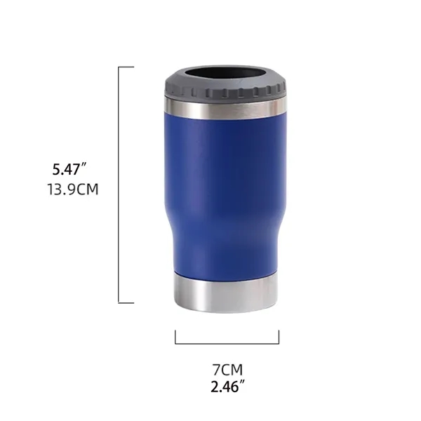 Description:This versatile can cooler features double-wall vacuum insulation technology to keep your drinks cold for up to 12 hours, or hot for up to 6 hours. The wide mouth opening allows you to easily fill and clean the cooler, and the compact design allows you to easily hold it in your hand or put it in your bag. Fits in most car cup holders. The can cooler is made of high-quality 304 stainless steel, which is rust-proof, leak-proof, and durable, ensuring that your drinks remain fresh and uncontaminated. The sturdy construction also makes it resistant to impacts and scratches. The sleek and elegant design of the can cooler makes it the perfect accessory for any occasion. Whether you are at the beach, camping, or partying with friends, this cooler will add a touch of sophistication to your drinks.