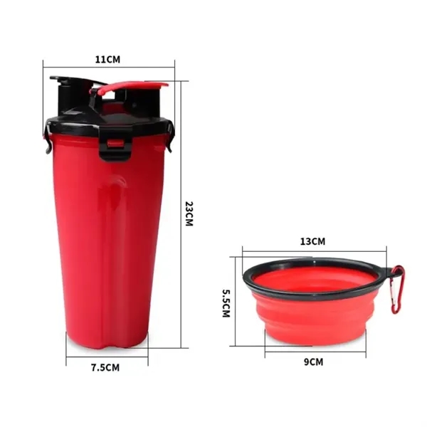 Description:This dual-purpose pet food and water cup can effectively solve the problem of drinking water and feeding, and is convenient to use on the go or outdoors. It is easy to carry, clean and hygienic. TUse environmentally friendly PP material, non-toxic, odorless, wear-resistant, and good texture. The bottle cap is well designed and leak-proof, so you can put it in your bag with confidence. It comes with a foldable bowl for easy feeding. The cup has two layers, one for water and the other for food. The hook design makes it easy to hang the cup on a backpack or belt, or you can put the cup in a backpack without leaking. Customized is available.