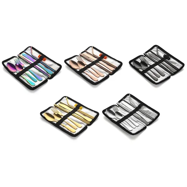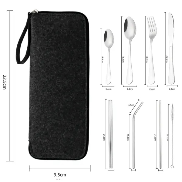 Description:Upgrade your dining experience with this reusable stainless steel cutlery set, designed for eco-conscious individuals, travelers, and outdoor enthusiasts. This portable utensil set includes a fork, spoon, knife, chopsticks, straight straw, bent straw, and a straw cleaner, all neatly packed in a durable zippered carrying case. Made from high-quality stainless steel, these utensils are rust-resistant, easy to clean, and built to last. The compact and lightweight design makes it perfect for office lunches, picnics, camping, travel, and daily use. Ideal for corporate giveaways, promotional branding, and sustainable business gifts, this reusable cutlery set can be customized with a logo to promote eco-friendly living while enhancing brand visibility.