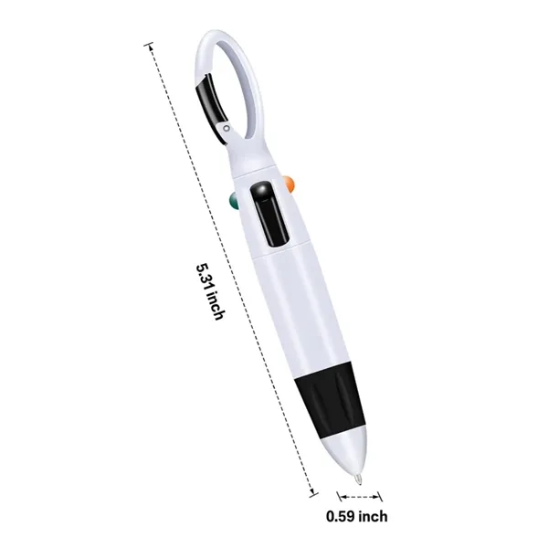 Description:Stay organized and efficient with this multi-functional 4-color retractable pen featuring a built-in carabiner clip. Designed for convenience, this pen allows quick access to black, blue, red, and green ink, making it ideal for note-taking, color coding, and professional use. The sturdy carabiner clip easily attaches to backpacks, keychains, and belt loops, ensuring portability for students, office workers, and outdoor adventurers.With an ergonomic grip and smooth ink flow, this pen offers comfortable writing and precision. Its durable construction makes it perfect for travel, business meetings, and on-the-go professionals. Whether you need a reliable office tool or a compact writing solution for hiking and camping, this pen is the ultimate blend of function and convenience.